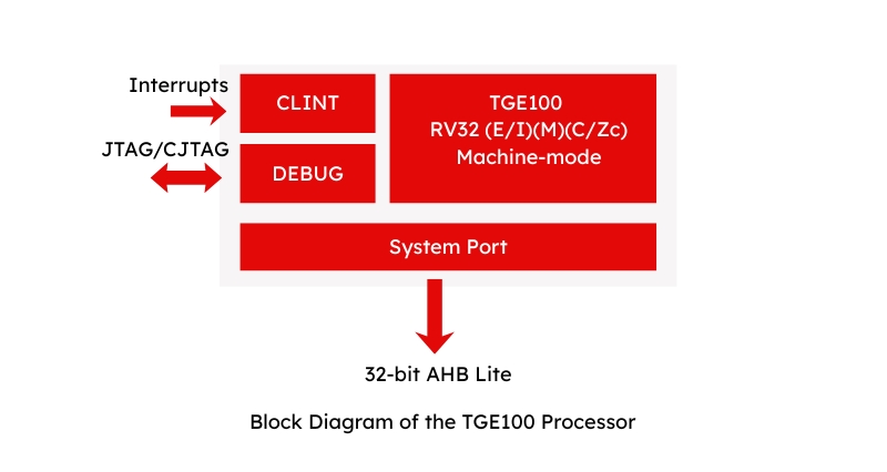 TGE100 is an extremely low power, ultra-compact 32-bit microprocessor based on the RISC-V instruction set architecture (ISA). As the smallest processor in our RISC-V CPU family, it is purpose-built for deeply embedded microcontroller applications. With a highly efficient 2-stage pipeline and configurable options, this RISC-V delivers exceptional energy efficiency and area savings while maintaining the flexibility of the open RISC-V ecosystem.